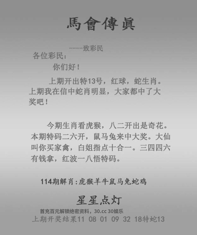 | 116期:马会传真解析: 今期生肖看三五,马马虎虎来骗人 牛狗鸡马本期有,还有三二四零中 四六等于二十四,好码就从中间出 三一四二是何肖,不管三七二十一 乐在其中 解:今期生肖看三五,马马虎虎来骗人,35羊,明肖马虎,牛狗鸡马本期有,还有三二四零中,明肖牛狗鸡马,四六等于二十四,好码就从中间出,24马,三一四二是何肖,不管三七二十一,31猪,42鼠,21鸡。 综合生肖:羊马虎牛狗鸡猪鼠猴 |